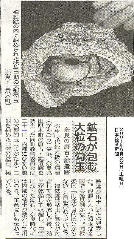 すいの勾玉なども出土しており、同町教委は「補修跡があるから神殿ではなく、首長の館など中枢施設の一つだろ