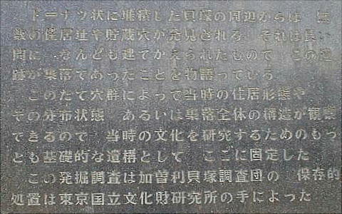 この場所では約7000年前の住居跡が発見されているが、当時の貝塚は残されていない。巨大な貝塚が作られ始めたのは約5000年前