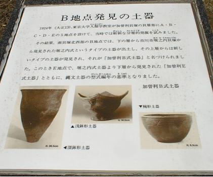 貝塚のB地点の土器は、縄文後期後半の加曽利B式として編年の指標となる土器と位置づけられている。