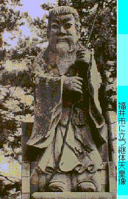 仁徳天皇より続く血筋が第25代の武烈天皇の死で途絶えたとき、記紀には越前の国にいた応神天皇の5世の孫である継体(母は垂仁天皇の7世の孫)が即位したと記されているが、