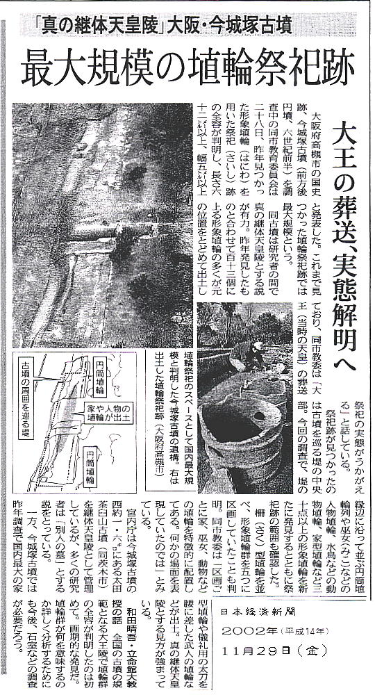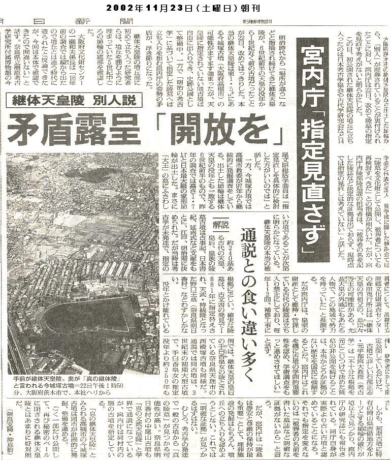 継体天皇陵、やっぱり別人の墓? 古すぎた埋葬の埴輪 平成14年(2002)11月22日 −Asahi.com−
