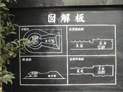 全長約100mの前方後円墳。奈良の石舞台古墳に匹敵する、後円部の巨大な横穴式石室は、全長19.4mあり、井原産の浪形石