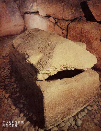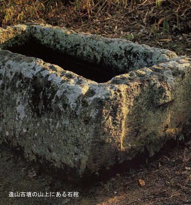 の古墳ではなくどこか近くの古墳から運ばれたもののようである。この石棺の石材は、遠く阿蘇の火山灰でできた阿蘇石で