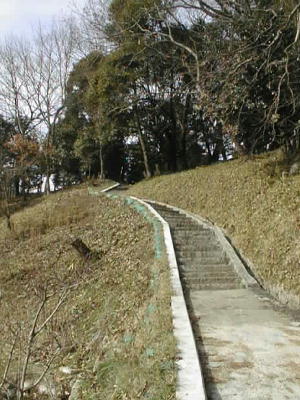 前方部の途中から上に登れるようになっていて、頂上には神社がある。そばに風化した石棺が放置されているが、これはこ