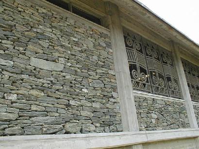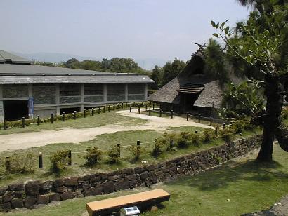 資料館の壁も、この結晶片岩を積んだ装丁になっている。資料館のすぐ裏手には竪穴式住居も復元されている。資料館の裏手