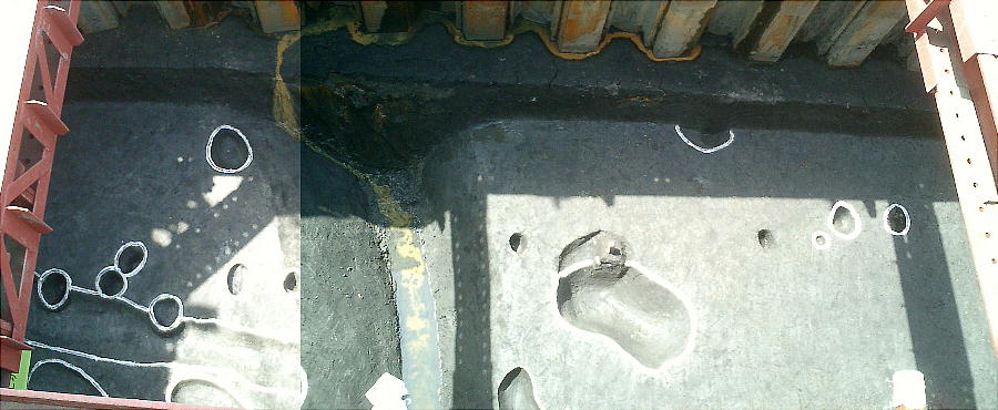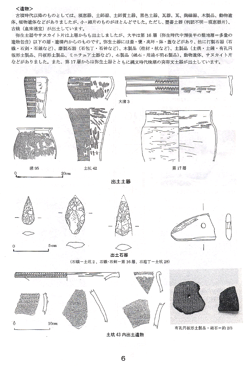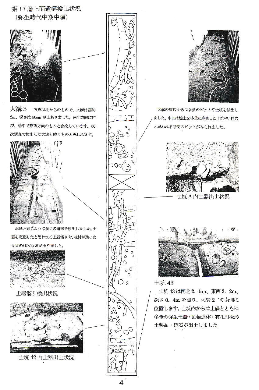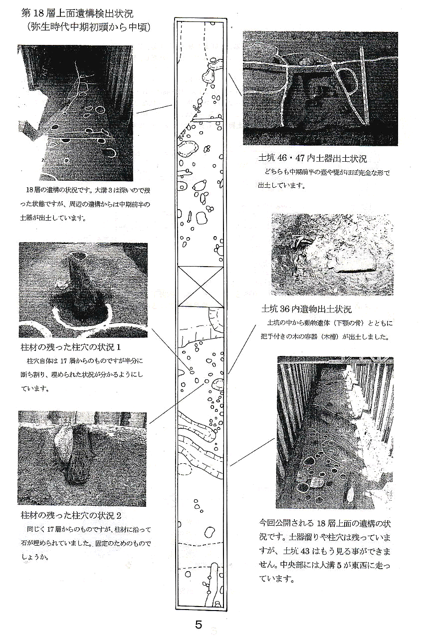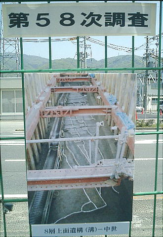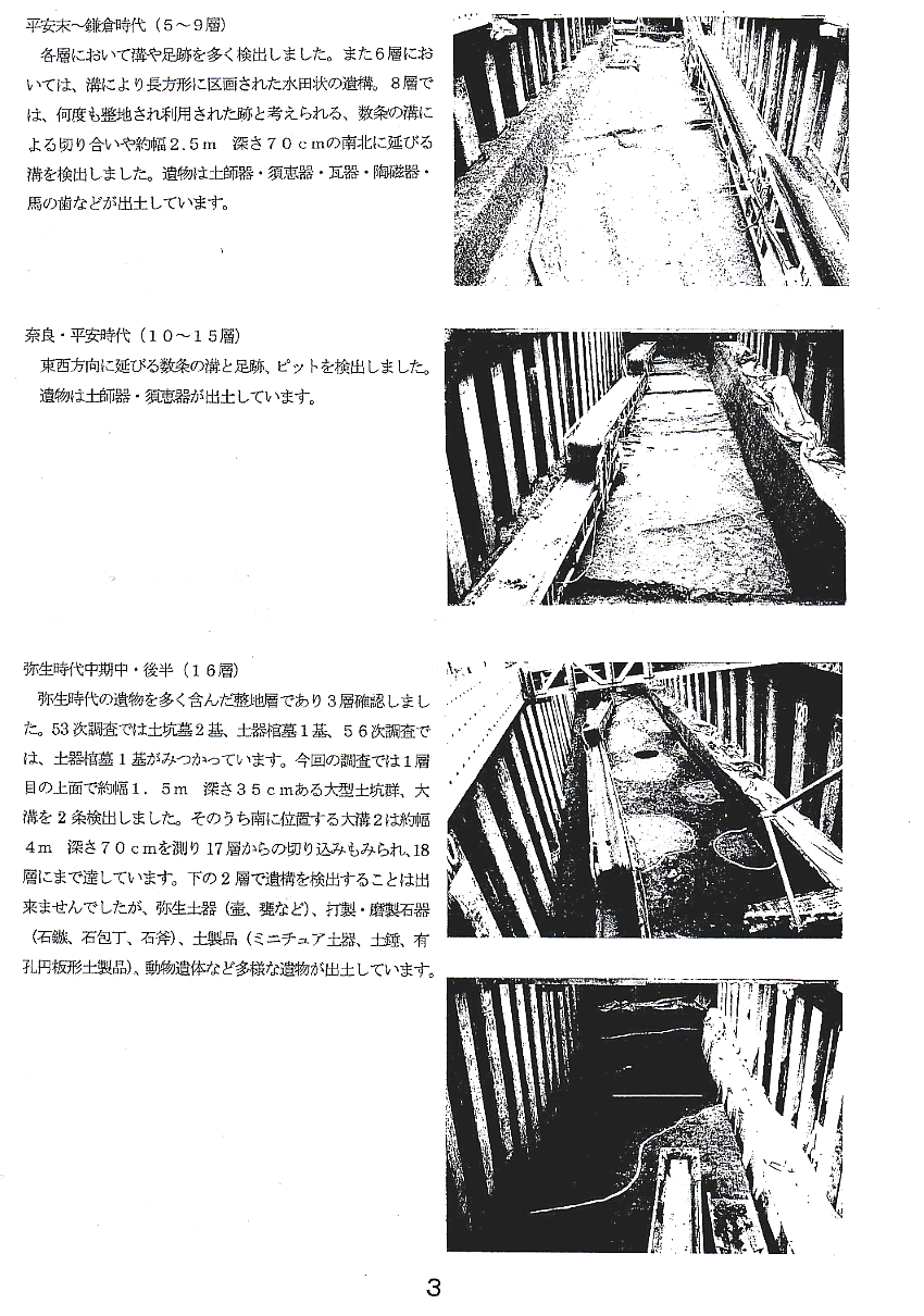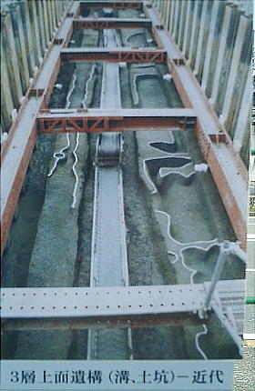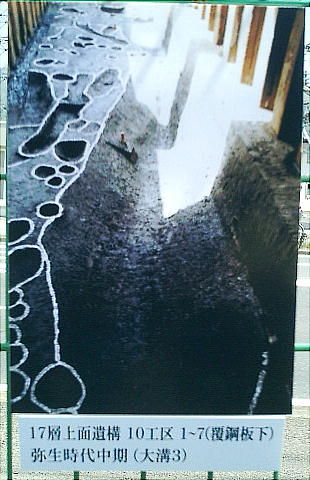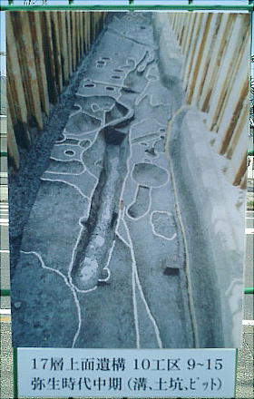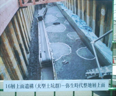 に極めて狭い領域をぬって行われている。また、奈良県の遺跡などと違って、ここは5mも掘り下げないと弥生時代の地表