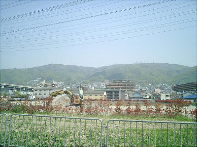 近鉄東大阪線の「新石切駅」南西500m位のところが説明会場。目の前には生駒の山々が壁のように立ちはだかっている。