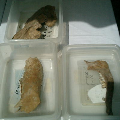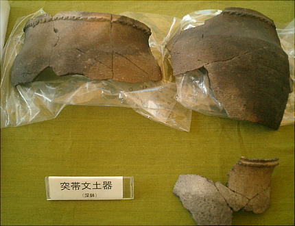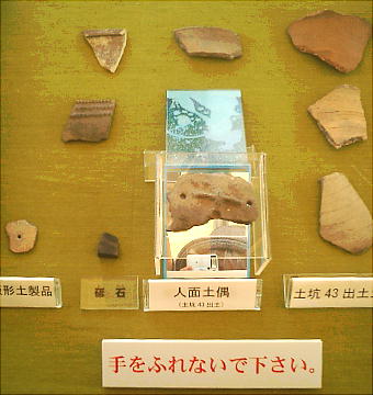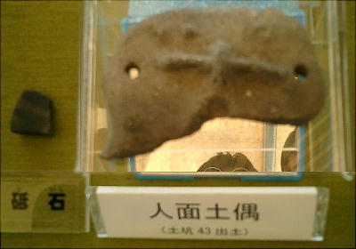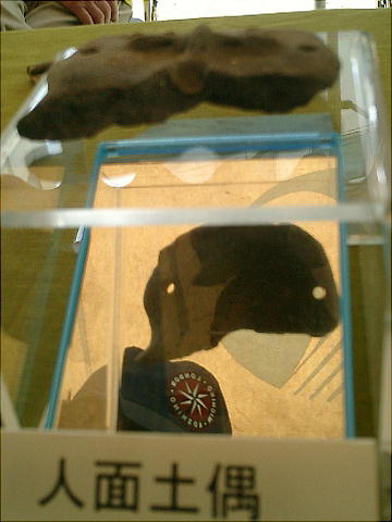 本日のメイン・イベントーッ。マスコミで一斉に報道された弥生時代中期とみられる土偶の頭部である。周知のごとく、土偶