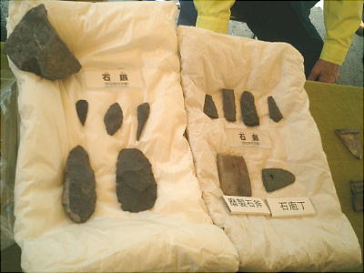 鬼虎川遺跡から出土した銅剣の鋳型片=大阪府東大阪市役所で8日午後2時、懸尾公治撮影