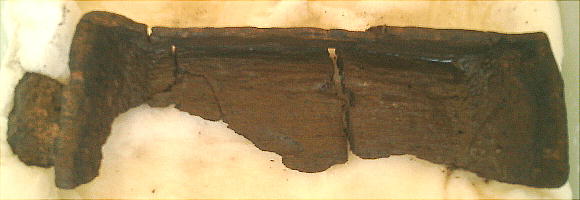 見つかったのは、剣身中央部に当たる一部分で、長さ8.8センチ、幅8センチ、高さ5.2センチ。砂岩製で、砥石(とい