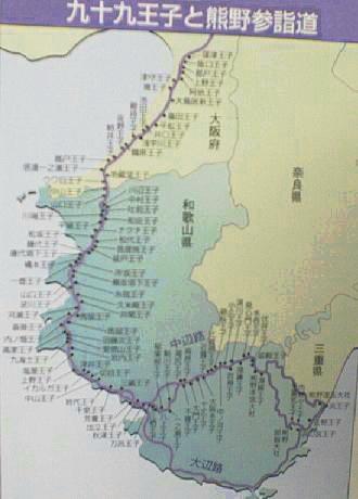 実際に九十九社あった訳ではなさそうだ。現在伝えられている王子跡は95である。(注:紀伊路と伊勢路は代表的な熊野古