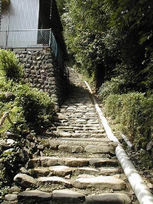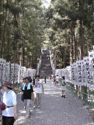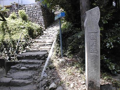 熊野大社本宮の参道脇を熊野古道は続いている。これを登り切ったところが本宮までの熊野古道の第一の終点である。