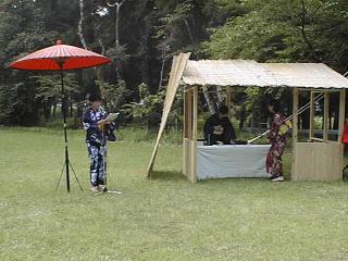 場所に移転された。元の場所にはそれを示す案内があるだけで他には何もない。訪れた時、たまたま広場では歌会をやっ