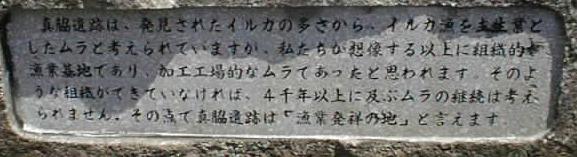 たのではないかと考えられている。そういう意味であろう、「縄文館」の脇にはイルカのレリーフに「日本漁業発祥の地」