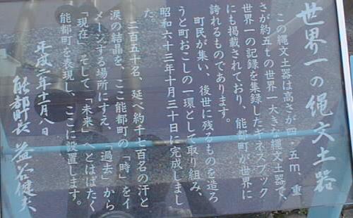 なのですぐ分かる。町民の寄せ書きでいっぱいのこの土器は、高さ4mほどで、ギネスブックにも「世界一の土器」と登録さ