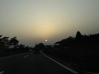 一路大阪へ向かう北陸自動車道の彼方に沈む夕陽。連休だというのに道路もさほど混んでなかった。