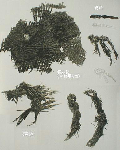 木製皿、丸木舟、編物類、縄、紐なども出土している。