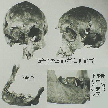 量の石鏃(せきぞく)や石槍(いしやり)が出土している事や、ただ1点だけだが肩甲骨に石槍の先端が突き刺さって折損
