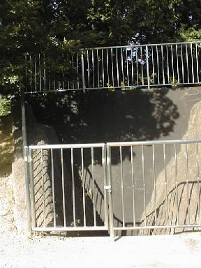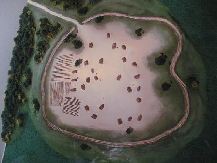 公園内に、発掘された環濠の断面が保存してある。(下左)鋭く切れ込んだV字型に、戦いの過酷さが偲ばれる。