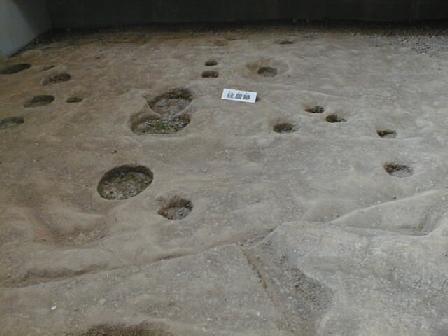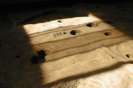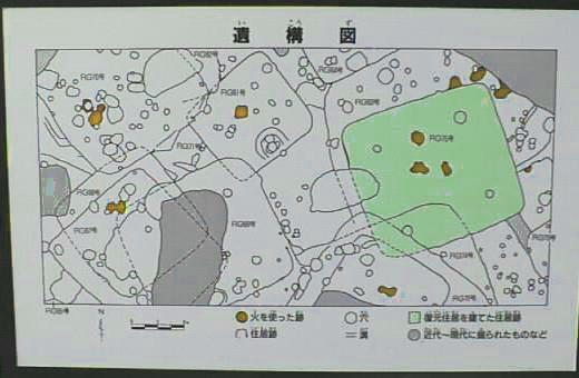 この遺跡からは20,000年前の旧石器時代の石器も見つかっている。その後縄文時代晩期(3,000〜2,300年前)後半の貯蔵穴、
