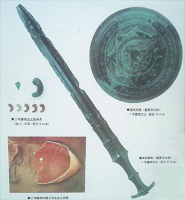 この遺跡からも中国製銅鏡が数面出土している。しかし、発見されたのは今から約200年ほど前で、現物は四散して残
