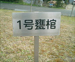 れた。2号甕棺も、高さ120cm、胴の直径が90cmの巨大な甕棺二つを口を合わせて埋めたもので、これも盗掘されていた。
