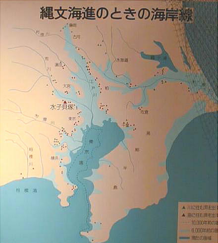 同時代前期( 5500ー6000年前)東京湾が奥深くこの辺りにまで到達していたのである。人々は海の幸を求めて海岸線近くに
