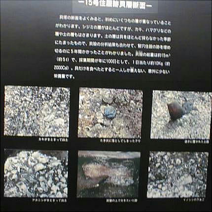 展示館内では毎日1時間おきに大スクリーンが、縄文時代とこの貝塚の説明を行っている。