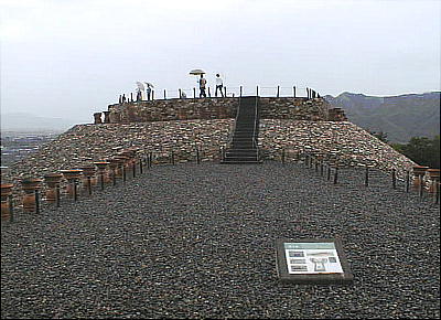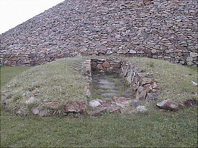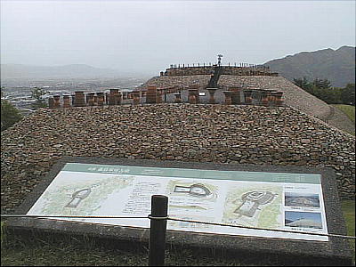 古墳の頂には、縦穴式石室の跡をレンガで示してある。石室内は薄い石片を幾重にも重ねて造った壁で構築されており、そ