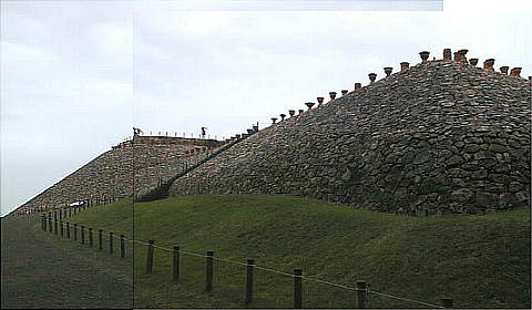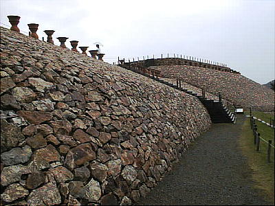 じ工法で築造当時の姿に復元されたそうだ。表面には約8万個の石英班岩を葺き、古墳の上には千曲川の玉砂利を敷き詰め、