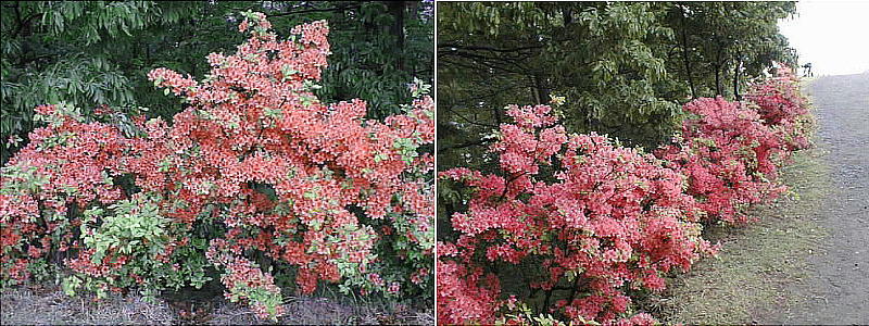 雨に打たれて色鮮やかなツツジ。雨なのに10人ほどが帰りのバスに乗り込んでいた。