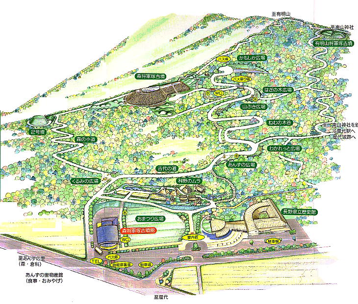 があり、科野のクニの奥津城(墓所)のたたずまいを伝える。古墳のある尾根から見下ろすと、古墳時代の集落(科野のム