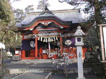 訪れた98年1月は、古処山も大己貴神社も深い霧のなかにあった。安本美典説によれば、この神社は高天原の神々の集う