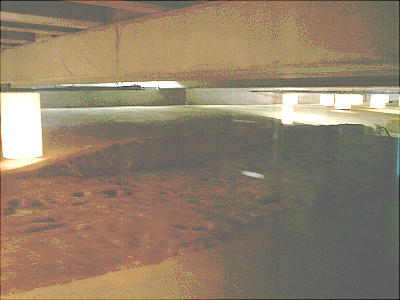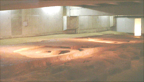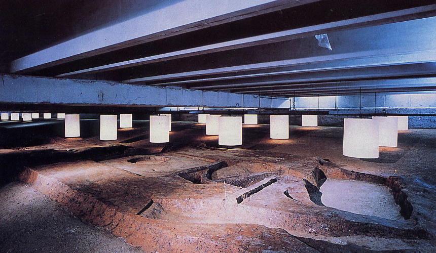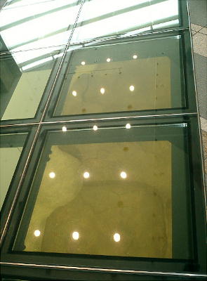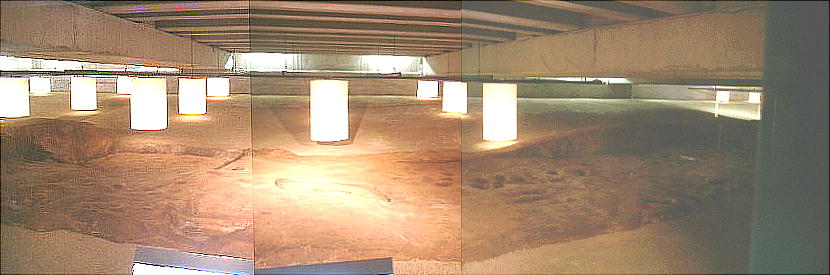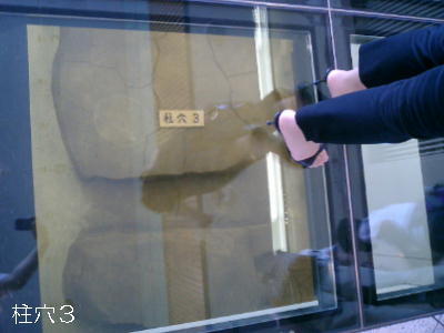 「管理棟」と呼ばれる建物群の一部は、博物館の床からすぐ強化ガラスを通じてその柱坑を上から眺められるようになって
