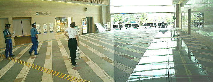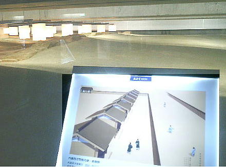 見学者は、いったん博物館を出て、外の階段を下りて地下の展示室へ入っていくようになっている。