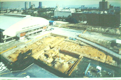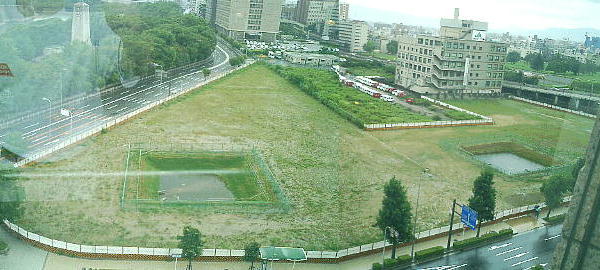 博物館の窓から見た旧NHKの建物跡。ここにも難波宮の遺構があった。
