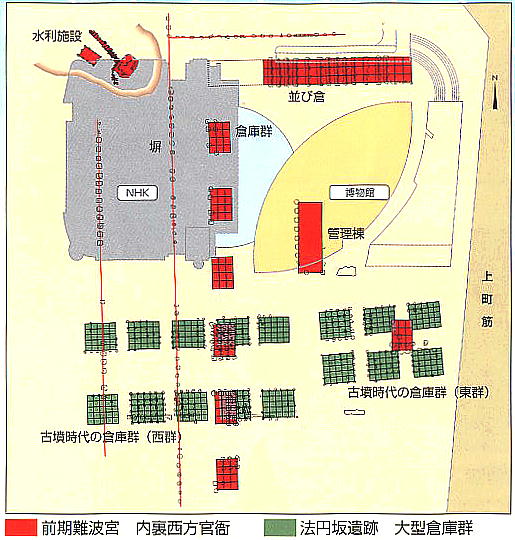 難波宮は現在大阪市のど真ん中、大阪城の南に「史跡難波宮跡」として残されているが、前期後期を通じての難波宮の役所