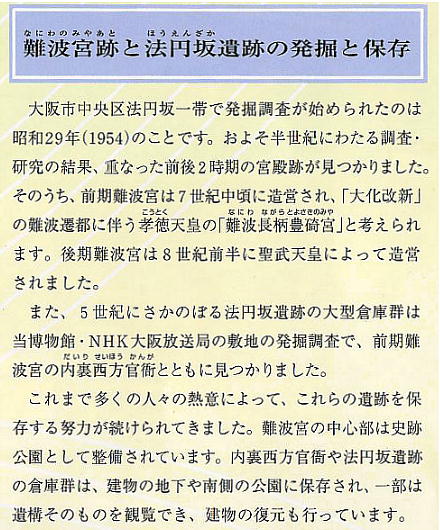 是非ここも一緒に見学すべきである。難波宮周辺には、既に多くの建物が建っており、幾つかのマンションや建物の地下に