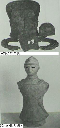 <139号墳> 139号墳は北群にあり、東西 23m、南北約20mの方形墳で、5世紀前半から中頃にかけて造築されたものと思われる。埋葬 の仕方は、木棺をそのまま地中に埋める木棺直葬と呼ばれる方法で、棺の大きさは、全長約 3.7m、幅70cm前後で、棺の中 からは頭部付近に櫛、中央に刀、足部側には肩・頸鎧、短甲が置かれていた。武具その他の多くの副葬品から、この古墳群 の盟主に当たる人物の墓ではないかとみられる。