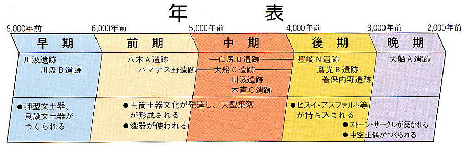 などが挙げられるが、これらはそっくり青森県三内丸山遺跡と共通する特徴である。つまり、縄文時代中期、津軽海峡を挟