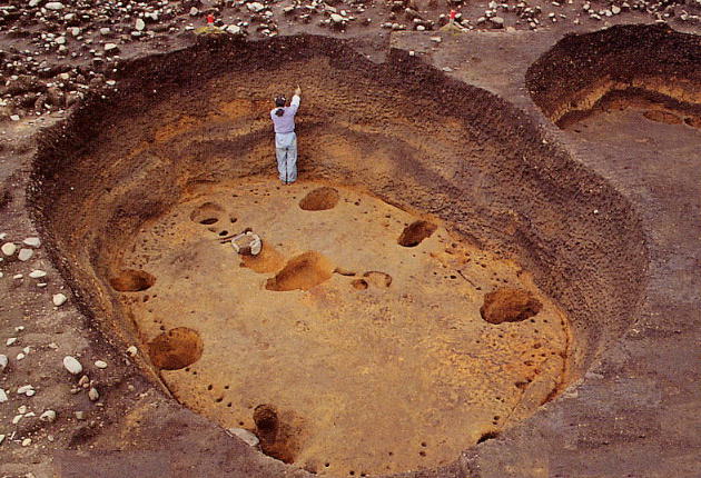 @.竪穴住居の規模が全体的に大型で、なかには深さが2mを超える竪穴住居が発見されていること、