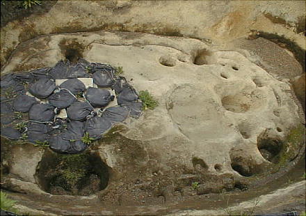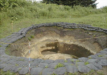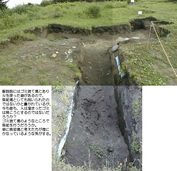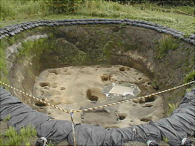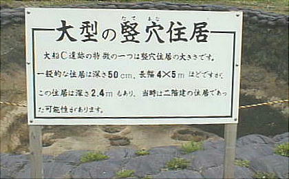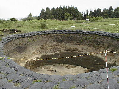 縄文時代の竪穴式住居跡は通常、深さ0.5m、長さ4〜5mというのが相場であるが、ここの住居跡には、深さ2.4m、長さ8〜11m