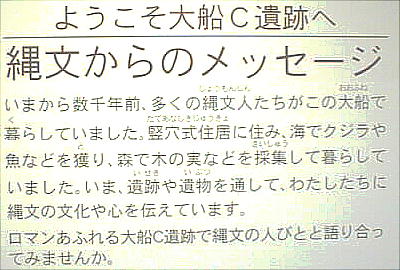 大船C遺跡も、町営の「大船霊園」を作る計画の事前調査で発見された。最初の調査で96軒の縦穴住居跡が見つかり、遺跡