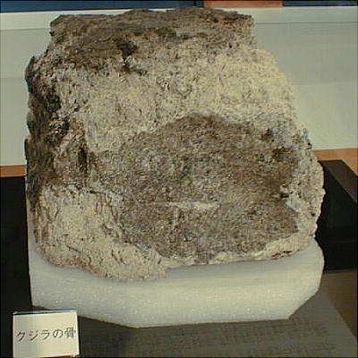 上右のクジラの骨は、発掘された当時は四隅から短い骨が延びていた。運搬時、