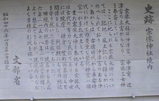 古代から交通の要所としての位置を占めていたことがわかる。人々は道の神様として古代からこの宗像大社を信仰してきた
