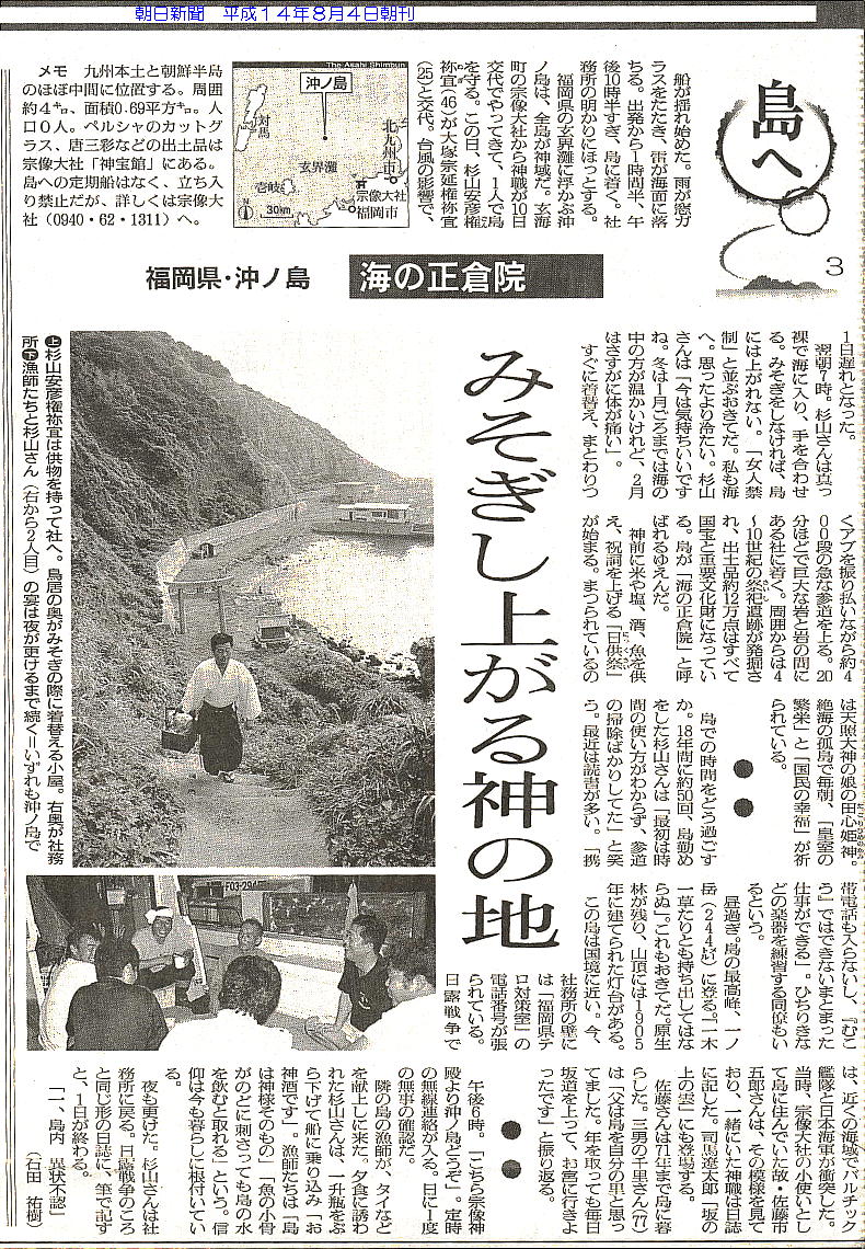 尚、現在「沖ノ島」は宗像大社の持所であり、一般人は島へ渡る事はできない。年に一度だけ日本海海戦の戦勝記念日に