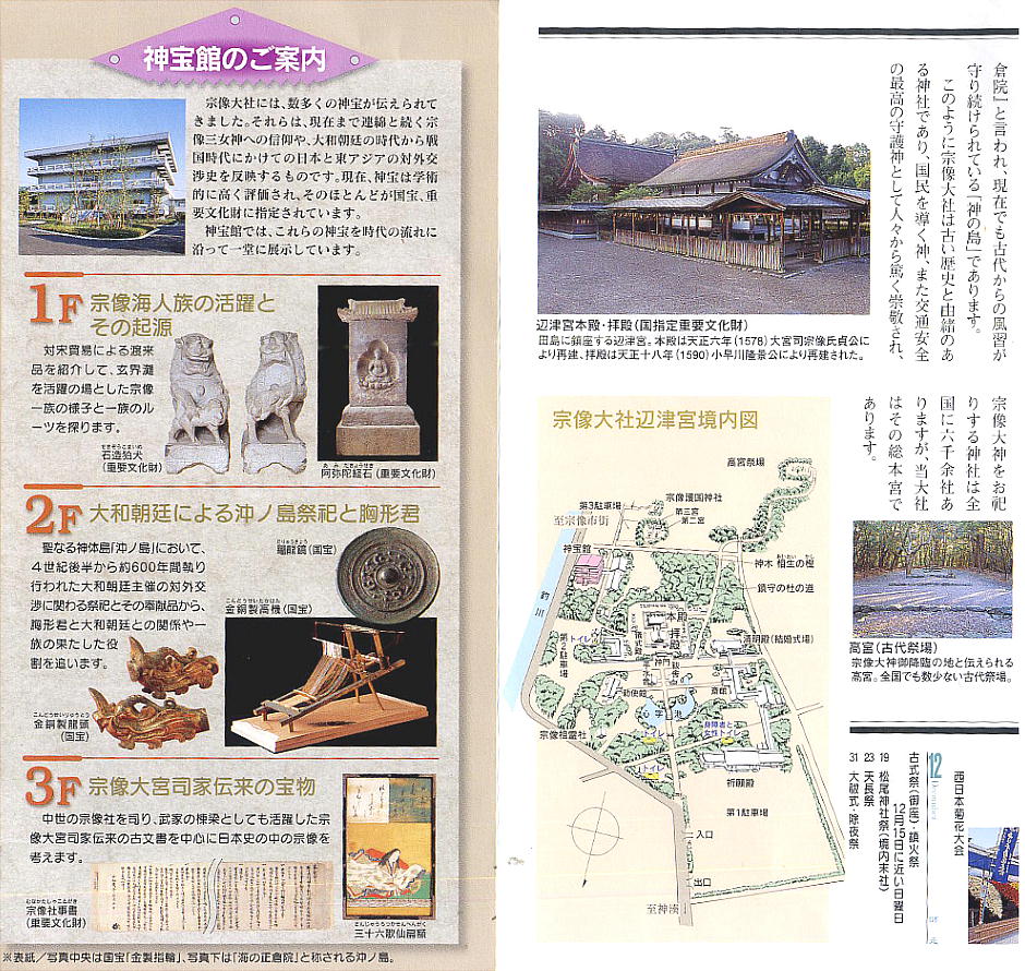 現在全て宗像大社神宝館に保管されているが、その総数は11万点とも12万点とも言われ、常時約1万点が展示されている。