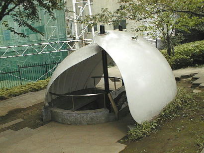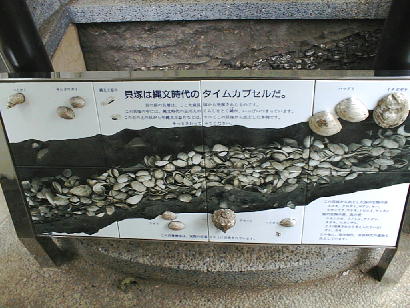 下の、貝殻を模した屋根の下に貝塚の断面模型図が設置してある。ここが、発見当時の場所なのだろう。