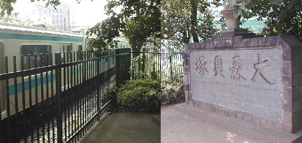 い。この遺跡庭園を降っていくと、今も東海道線の線路脇に当時の貝塚碑が建っている。