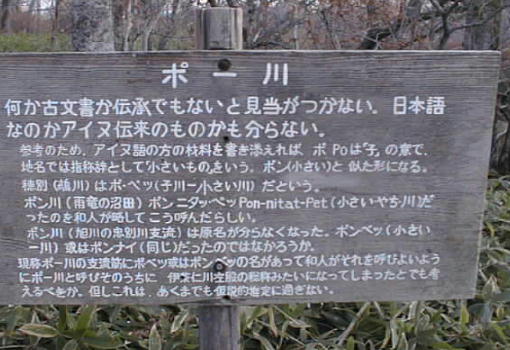 ■蛇行して湿原を流れる「ポー川」。下の解説にもあるが「ポー」なんて一体どんな意味があるのだろうか。アイヌ言語は
